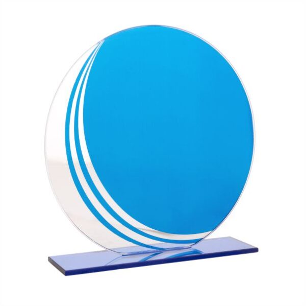 - Cristal circular con formas azules.